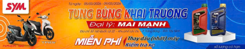 Nhằm đồng hành cùng mọi người trên hành trình lái xe an toàn và bền bỉ, SYM Việt Nam phối hợp cùng SYM MAI MẠNH tổ chức chương trình thay nhớt xe miễn phí với chủ đề :